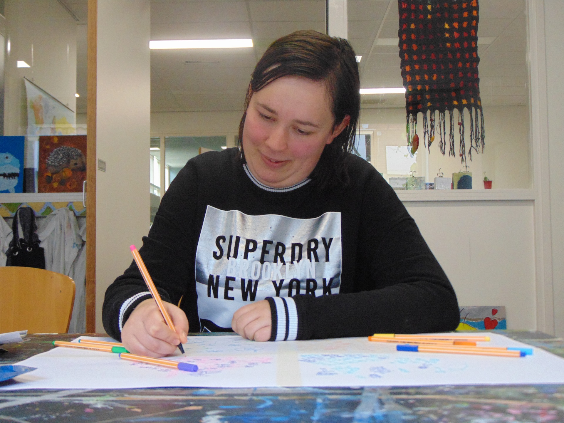 Smoel is een kunstwerkplaats voor mensen met een beperking. Wil jij iets met kunst doen en laten zien wie je bent, waar je voor staat en wat je kunt? Dan ben je bij Smoel op de juiste plek. Een open werkplek waar je zo naar binnen kunt stappen, maar gelijktijdig ook een plek waar je je vertrouwd en veilig kunt voelen en waar het persoonlijke contact heel belangrijk wordt gevonden.