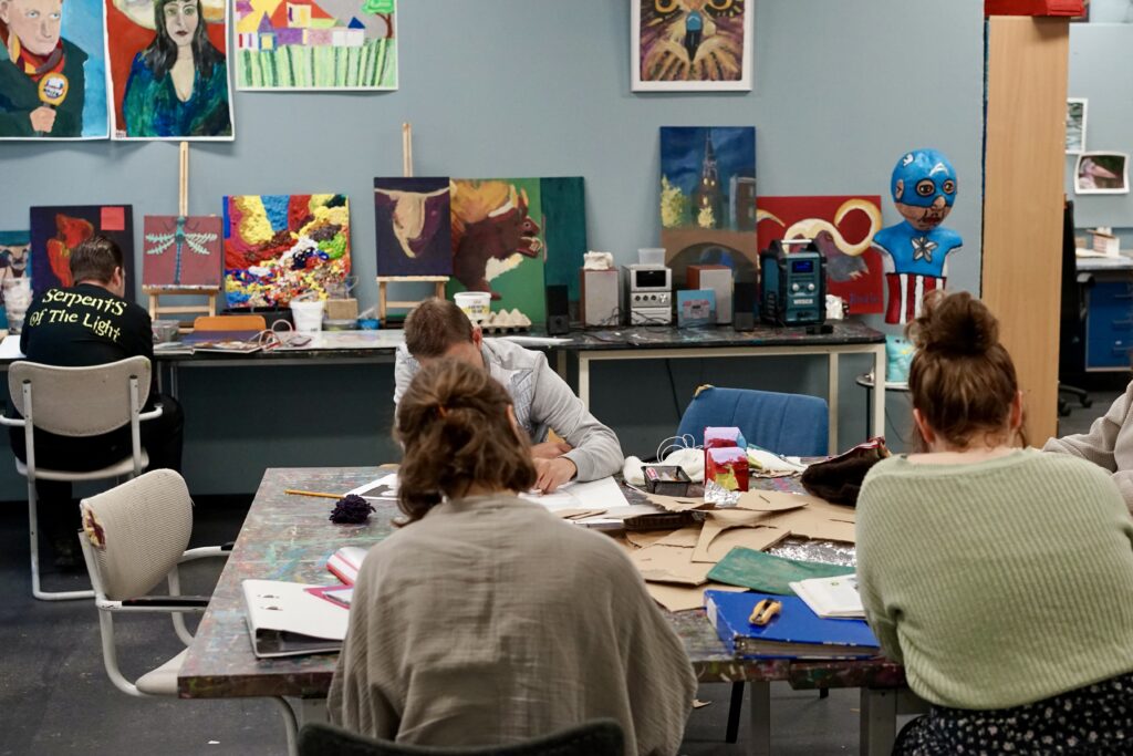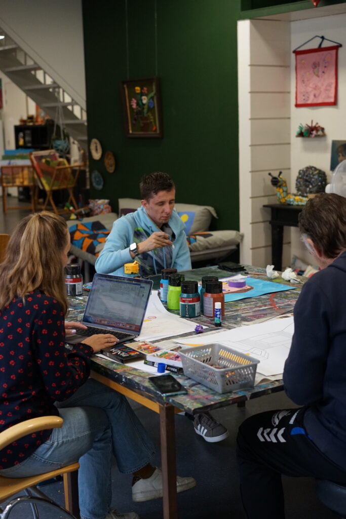 Deze medewerkers werken bij Smoel. Iedereen heeft zo zijn of haar eigen stijl en interesses. De één schildert graag, de ander werkt liever met papier-maché. (De foto’s zijn gemaakt door Hans, een van onze medewerkers, hij is fotograaf in zijn vrije tijd).