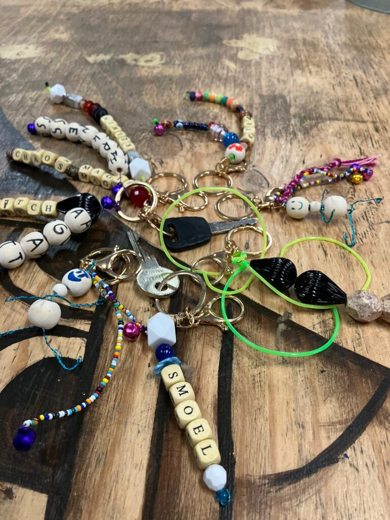Maar een leuke dag was het zeker wel! We hebben van tevoren gevraagd wat de aanwezige medewerkers leuk zouden vinden om te doen als activiteit in de ochtend. Kyra kwam met het idee om allemaal een sleutelhanger te maken.